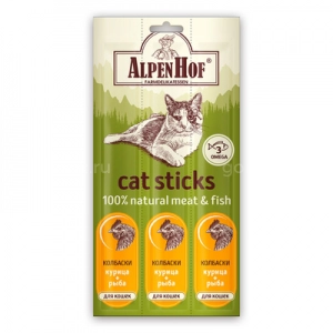 AlpenHof Лакомство Колбаски с курицей и рыбой для кошек, 3 шт.